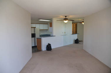 From entrance, looking toward bathroom and kitchen area