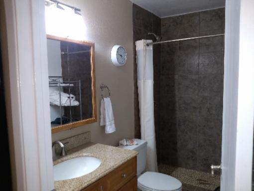 New walk in natural stone shower