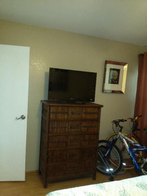 Bedroom with dresser, TV and DVD player